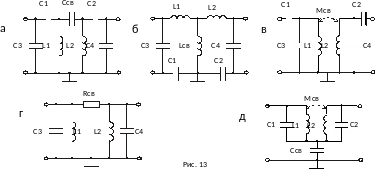 Сопротивления связи для других вариантов схем связанных контуров (рис. 13) определяются как: