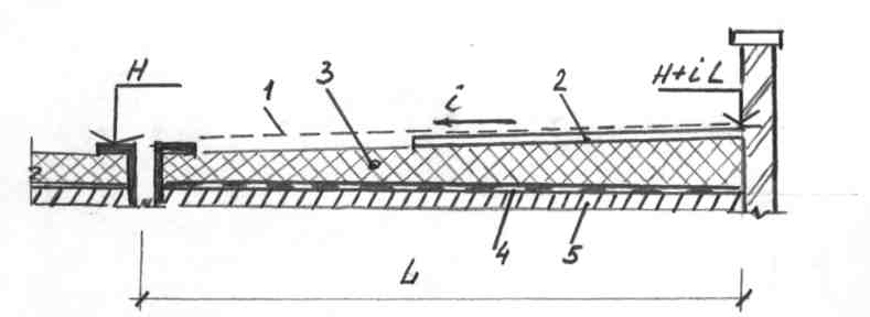 1-причалка; 2-маячная рейка; 3-теплоизоляция; 4-пароизоляция; 5-плита покрытия