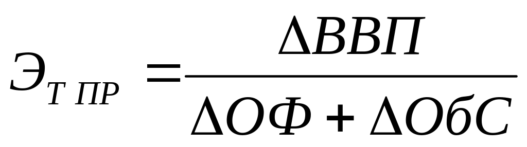 III. 10. Показатель эффективности технического прогресса — роста фондовооруженности труда (ЭТ ПР) — отношение прироста ВВП (∆ВВП) к суммарному приросту основных и оборотных фондов |