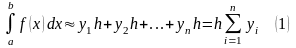 Здесь - значения подынтегральной функции в левых концах отрезков разбиения. Формулы (1) и (2) называют формулами прямоугольников.