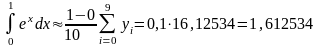 При расчёте по данной формуле получили все 5 верных цифр после запятой. Таким образом, в одинаковых начальных условиях метод Симпсона даёт наибольшую точность приближённых вычислений определённого интеграла.