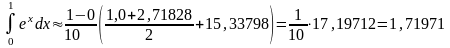 Пример 2. В условиях примера 1 использовать формулу трапеций. Оценить ошибку вычисления; сравнить полученное приближённое значение с точным.
