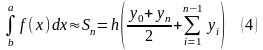 Формула (4) носит название формулы трапеций. Ошибку для метода трапеций можно оценить по формуле: