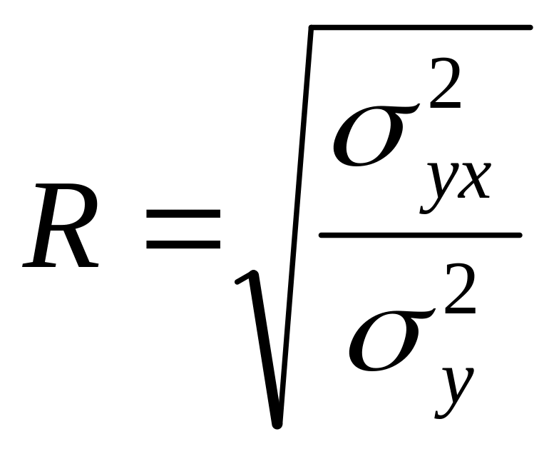 Корреляционное отношение показывает тесноту связи между исследуемыми признаками.если = 1, то связь функциональна, если = 0, то связь отсутствует, если 0 < < 1, то связь корреляционная.