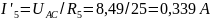 Зная ЭДС и внутреннее сопротивление эквивалентного генератора вычисляем ток исследуемой ветви: