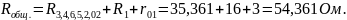 Для расчета внутреннего сопротивления эквивалентного генератора необходимо преобразовать активный двухполюсник в пассивный (рис. 1.6) при этом ЭДС и из схемы исключается, а внутренние сопротивления этих источников в схеме остаются.