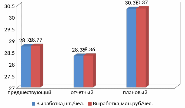 где Вгод тек.,В год.баз.– среднегодовая выработка, соответственно, в текущем (расчетном) и базовом периодах, млн.руб./чел.