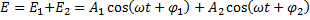 Суммарные колебания в точке пересечения волн определяются принципом суперпозиции: