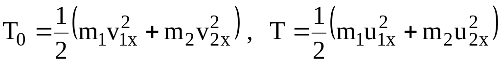 Предполагая, что соударяющиеся тела движутся поступательно, найдем кинетическую энергию СМТ, состоящую из двух АТТ, в начале и в конце рассматриваемого удара: