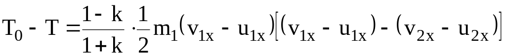 Если удар не вполне упругий, то соударяющиеся АТТ не восстанавливают полностью своей формы в конце удара. Следовательно, часть кинетической энергии, которой обладали эти АТТ в начале удара, тратится на остающуюся деформацию их, а также на нагревание этих АТТ. Подсчитаем величину кинетической энергии, теряемой при прямом центральном ударе двух АТТ, полагая, что удар является не вполне упругим.