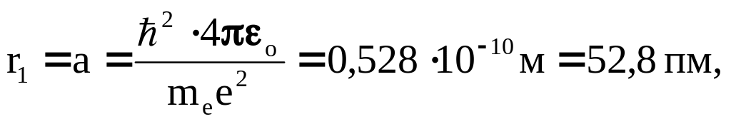 Для атома водорода (Z = 1) радиус первой орбиты электрона при n = 1, называемый первым боровским радиусом (а), равен