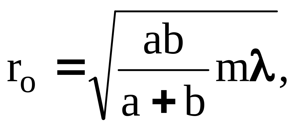 где m - целое число, то отверстие оставит открытыми ровно m первых зон Френеля, построенных для точки Р.