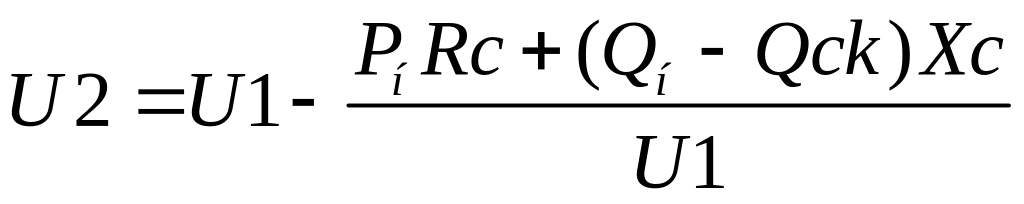 Из формулы видно, что изменением величины Хс (например, шунтированием конденсаторов при сниженных нагрузках) можно осуществлять ступенчатое регулирование напряжения сети.