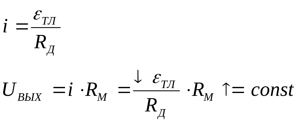При увеличении температуры окружающей среды сопротивление Rt увеличивается но RM↑ и произведение (UВЫХ=const).