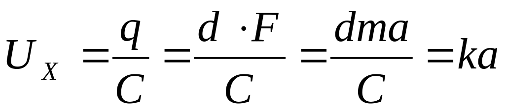 Входная величина – перемещение датчика в вертикальном направлении. При этом на груз действует сила F=ma, эта сила компенсирует Fпр. Перемещение груза пропорционально ускорению и измеряется реостатным датчиком.