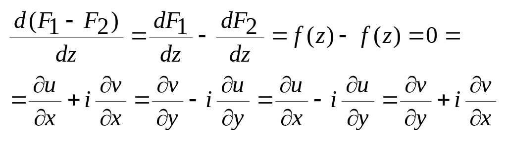 За умовами f(z) аналітична в обл. Д, тобто неперервна в цій обл. і має похідну.