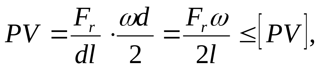 где V– окружная скорость цапфы. [PV] определяется в зависимости от материалов вала и вкладыша и характеризует удельную работу сил трения. Расчет по [PV] гарантирует нормальный тепловой режим и стойкость против заедания.