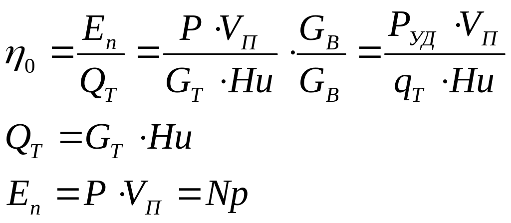 общий КПД определяет долю тепловой энергии идущую на передвижение ЛА. Степень совершенства ВРД как тепловой машины хар-ся величиной эффективного КПД. Еп- полезная работа. Qт –подведенное тепло