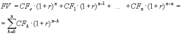 Элемент денежного потока принято обозначать CFk (от Cash Flow), где k - номер периода, в который рассматривается денежный поток. Настоящее значение денежного потока обозначено PV ( Present Value), а будущее значение - FV ( Future Value).