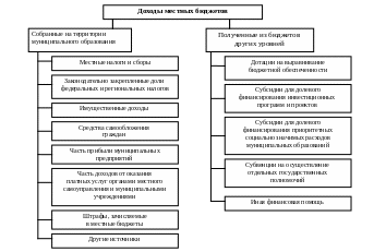 К имущественным доходам местных бюджетов относятся доходы от приватизации, реализации, сдачи в аренду муниципального имущества, установленная законодательством доля доходов от приватизации государственного имущества, находящегося на территории муниципального образования, платежи в местные бюджеты за пользование недрами и природными ресурсами, установленные в соответствии с федеральными законами. В Федеральном законе 1995 года к доходам местных бюджетов относились также доходы от местных займов и лотерей, муниципальных ценных бумаг, а также финансовые средства, передаваемые органам местного самоуправления для компенсации потерь, вызванных решениями органов государственной власти в процессе исполнения бюджета. В Федеральном законе 2003 года эти источники не упоминаются.