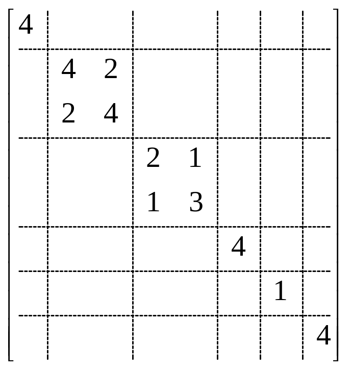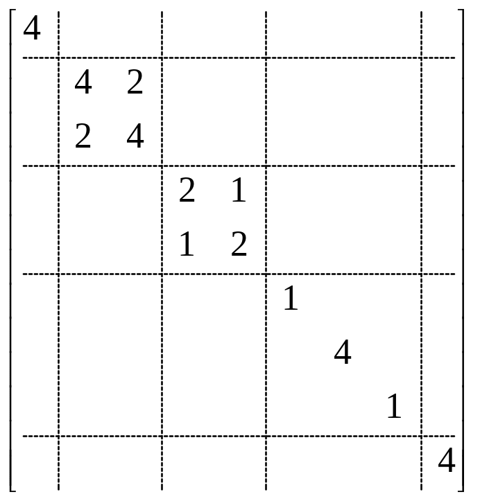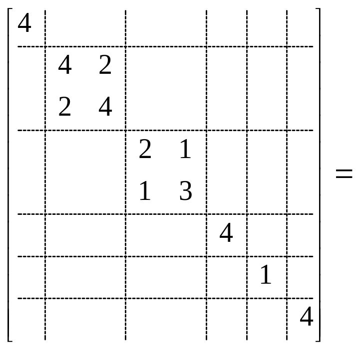 Таким образом, минимальные размеры матриц становятся, соответственно 8×2, 8×1 и 8×8.