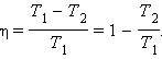 С. Карно выразил коэффициент полезного действия цикла через температуры нагревателя T1 и холодильника T2: