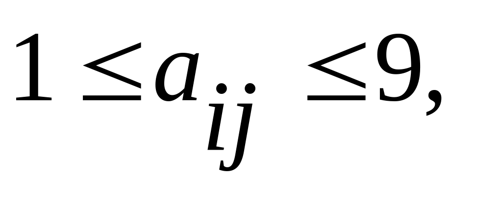2)Построение множества матриц парных сравнений. Элементы любого уровня сравниваются друг с другом относительно их воздействия на направляемый элемент. Для каждой совокупности элементов, связанных с одним вышестоящим элементом, строится матрица парных сравнений. Помимо целых чисел от 1 до 9 используются и дроби. Относительная важность любого элемента, сравниваемого с самим собой, равна 1; поэтому диагональ матрицы содержит только единицы. Таким образом, для матрицы парных сравнений ||aij|| должны выполняться следующие условия: