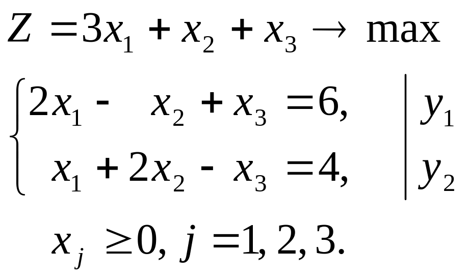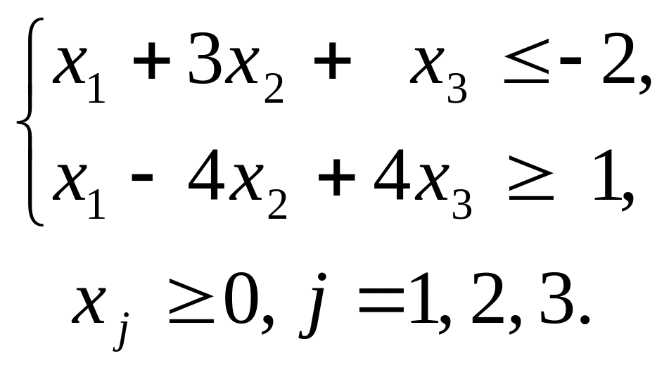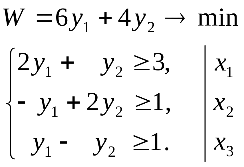 Пример 2. В двойственной задаче к основной переменные могут иметь любой знак. Составим двойственную задачу к основной: