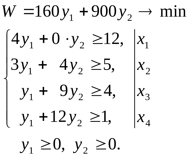 По решению двойственной задачи найдем решение исходной по второй теореме двойственности (теореме равновесия).