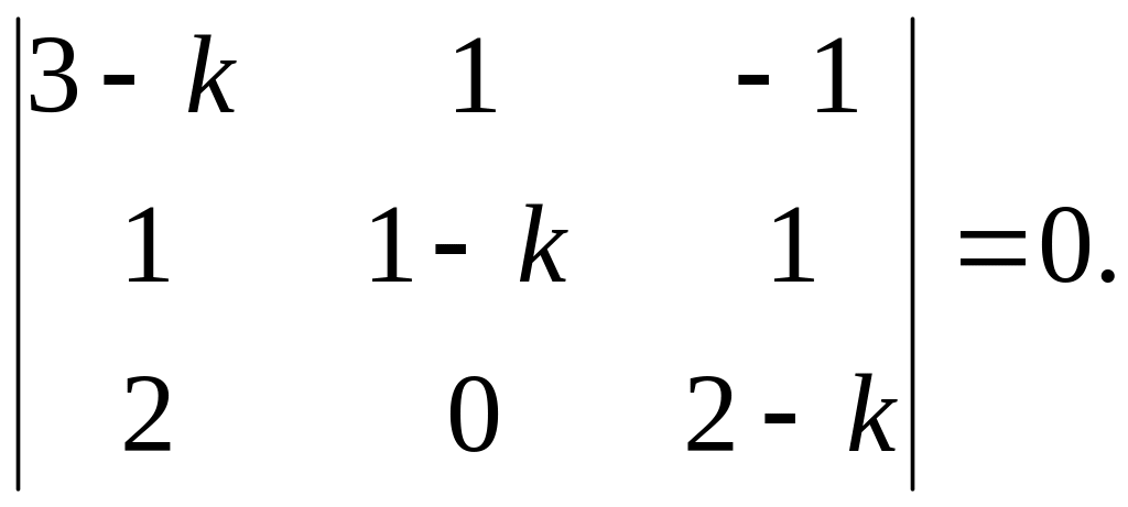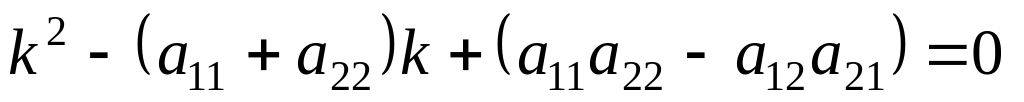 Система (11.3) есть однородная система из двух линейных алгебраических уравнений с двумя неизвестными . Из алгебры известно, что однородная система линейных алгебраических уравнений имеет нетривиальное (ненулевое) решение тогда и только тогда, когда определитель этой системы равен нулю. Таким образом, неизвестный параметр k в (11.2) должен быть корнем уравнения