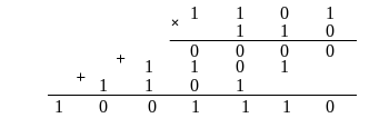 Здесь M – бит переноса из предыд. разряда. Применение ЛЭ «И» для выпол-ия арифмет. операции умножения в данном случае закономерно, поскольку в рамках одного разряда и арифмет., и логич. умножение подчиняется общим правилам. Цифры в скобках у микросхем относятся к примеру перемножения двух чисел, A = 11012 и B = 1102. Последов-ть действий такова: