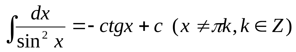 Таблица основных интегралов