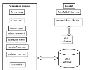 Он содержит коллекцию таблиц и отношений между ними. Он представляет собой упрощенную реляционную базу данных со встроенной поддержкой языка XML, которая хранит размещенный в памяти моментальный снимок части реальной базы данных, с которой работает приложение. После загрузки данных в DataSet соединение с их источником может быть разорвано. Далее приложение производит обработку данных, после чего снова устанавливается соединение с источником, и модифицированные данные передаются источнику. Объект DataSet может работать как с провайдерами данных, так и с данными в файлах формата XML