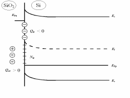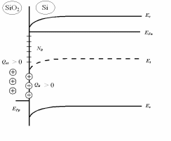 Рис.5. Зонная диаграмма границы раздела SiO2-Si на границе прямо смещенного эмиттерного перехода.