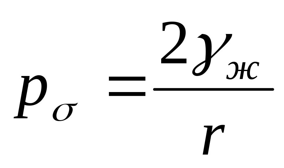 Величина капиллярного давления рσ, создаваемого поверхностным натяжением жидкости γж на искривленной поверхности (мениске) жидкости в капилляре (по закону П. Лапласа) :