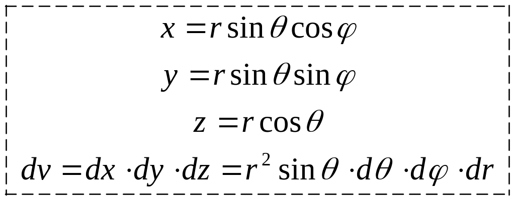 Здесь dv – элемент объёма, координаты сферической системы имеют следующие интервалы: 0≤r≤∞, 0≤θ≤π, 0≤≤2π.