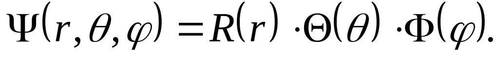 Заменяя в уравнении (8.2) оператор Лапласа полученным оператором (8.3), приходим к выводу, что полная волновая функция, являющаяся решением уравнения Шредингера, может быть разделена на три составляющих – три функции каждой сферической координаты: