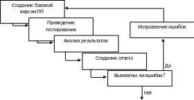 Циклом тестирования называется совокупность действий, выполняемых тестировшиком с момента передачи базовой версии ПП тестировщику для интеграционного, системного или приемочного тестирования до момента успешного завершения тестирования (рисунок). На каждом проходе цикла тестирования создаются:
