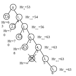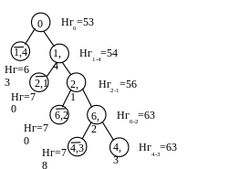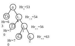 L =16 + 25 + 5 + 5 + 5 + 7 =63, что совпадает с нижней границей последнего узла Нг56=63.