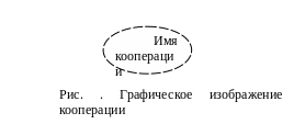 Кооперация определяет взаимодействие классов или других элементов, в результате которого выполняется некоторый вариант использования; Кооперация имеет как структурный, так и поведенческий аспект. Один и тот же класс может принимать участие в нескольких кооперациях; таким образом, они являются реализацией образцов поведения, формирующих систему. Графическое изображение кооперации представлено на рис. :