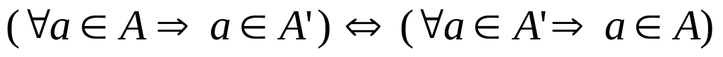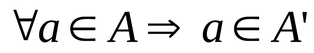 Множество А эквивалентно множеству A’, если для любого элемента множества А можно сказать, что он принадлежит множеству A’ и наоборот.