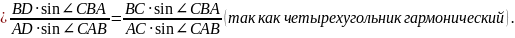 Дальнейшее изучение свойств симедианы может быть связано с точкой Лемуана (точка пересечения симедиан) или с гармоническим четырехугольником. Отметим, что название гармонический четырехугольник возникло из понятия гармонической четверки точек, то есть точек, двойное отношение которых равно минус единице. Понятие двойного отношения, в свою очередь, связано с проективными преобразованиями плоскости и выходит за рамки данной работы.