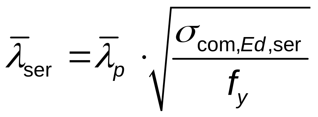 где com,Ed,ser — наибольшее напряжение сжатия (рассчитанное для эффективного поперечного сечения) в рассматриваемой части сечения под нагрузками в предельном состоянии по эксплуатационной пригодности.