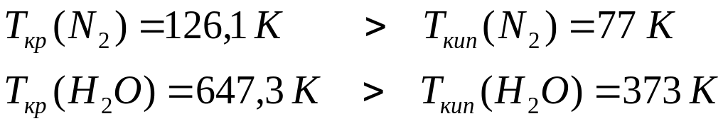 Состояние с критическими параметрами называют «критическим», т. к. если параметры превышают критические, реальный газ невозможно сжать до жидкого состояния. При этом критическая температура выше температуры кипения.