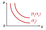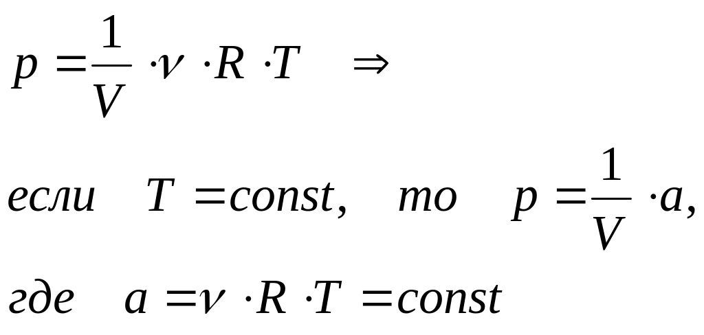 Зависимость p(V) на координатной плоскости (p,V) изображается гиперболой, которая называется изотермой (рис.):