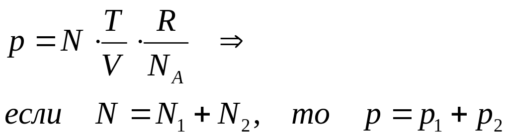 2. Закон Дальтона: давление смеси идеальных газов равно сумме парциальных давлений компонент смеси