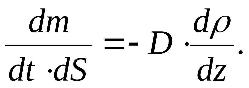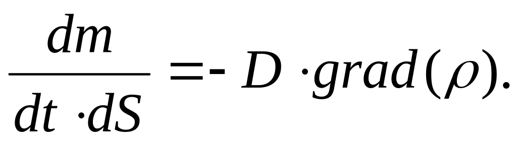 Диффузия подчиняется закону А. Фика: поверхностная плотность потока массы вещества, переносимого через единичную площадку в единицу времени, пропорциональна градиенту плотности вещества