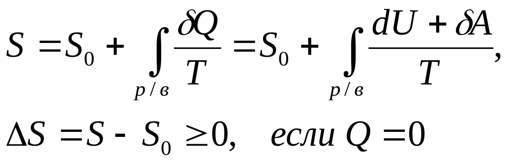 Для необратимого (неравновесного) процесса в изолированной системе энтропия возрастает