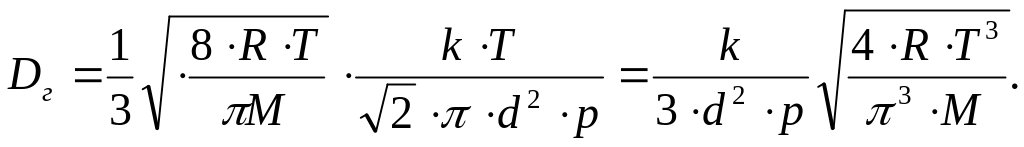 Коэффициент диффузии газа (по молекулярно-кинетической теории):
