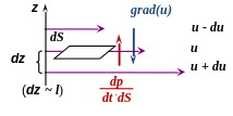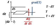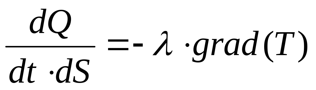 Вязкость подчиняется закону Фурье: поверхностная плотность потока теплоты (внутренней энергии) вещества, переносимого через единичную площадку в единицу времени, пропорциональна градиенту температуры вещества